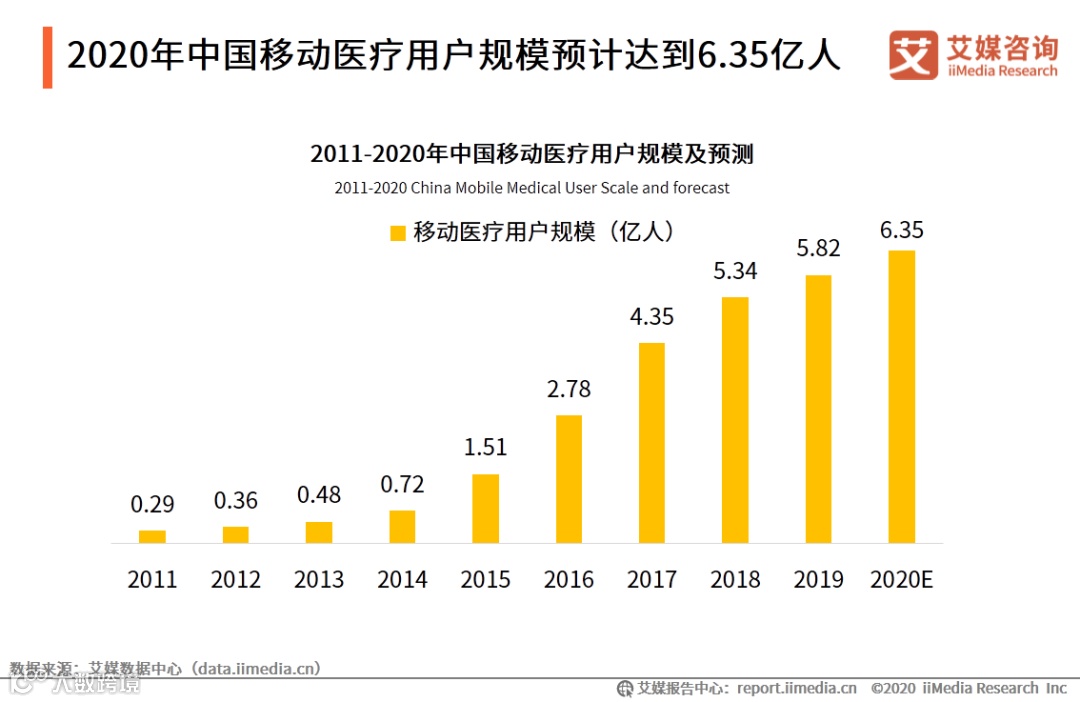图表3:2011-2020年中国移动医疗用户规模及预测
