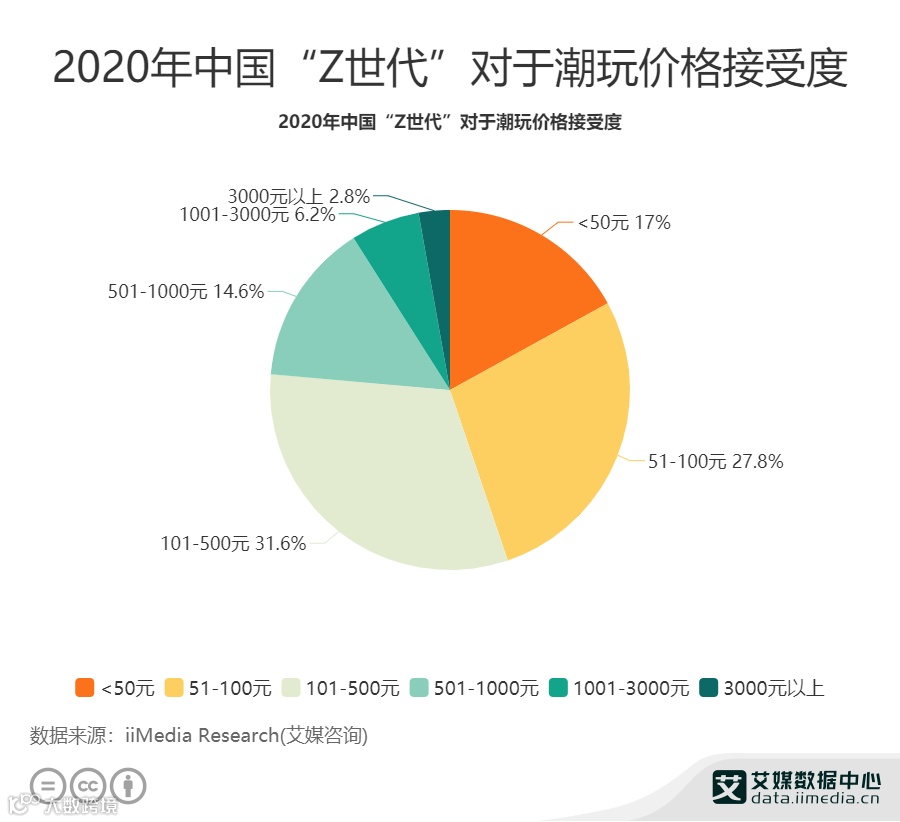艾媒报告中心数据显示,95后成为潮玩的重要消费用户,占比近4成。其中23.6%的用户可以接受潮玩单价在500元以上,超30%的用户倾向于一次性购买全套潮玩。而对于喜爱的潮玩产品/IP,12.3%的用户表示出新款就会买,这都凸显了年轻群体旺盛的消费力。