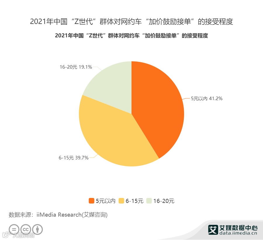 值得注意的是,Z世代群体普遍对网约车“加价鼓励接单”的接受程度较高。其中41.2% Z世代用户接受5元以内的“加价鼓励接单”,而有39.7% Z世代用户愿意加价6-15元,19.1% Z世代用户愿意加价16-20元。