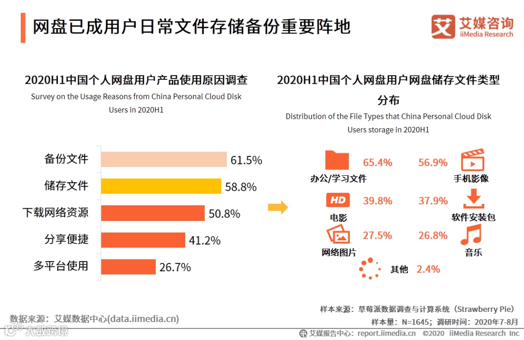以上内容源自艾媒咨询发布《2020上半年中国个人网盘市场现状及头部企业布局研究报告》,完整版共31页;限于公众号篇幅,故仅摘部分数据和观点,如有兴趣深入,移步报告中心官网下载。