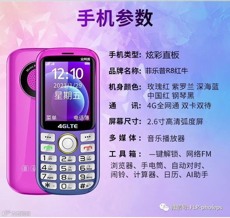 菲乐普R8红牛#全网通4G#炫彩直板机