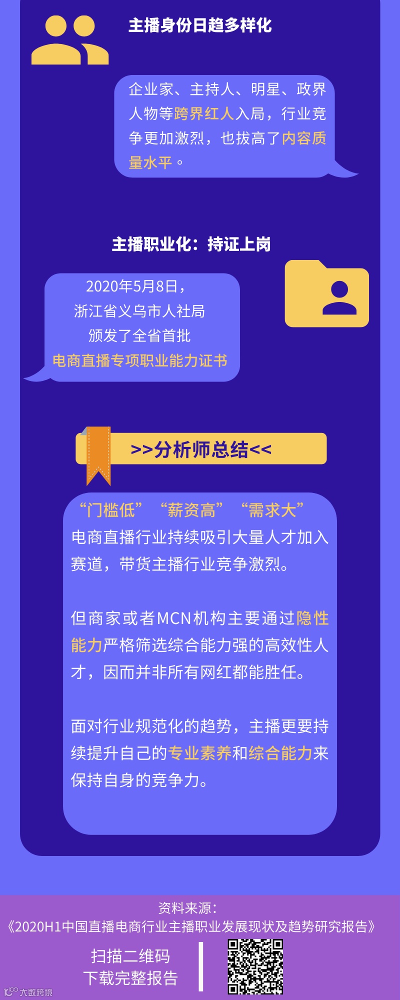 让我们通过艾媒咨询发布的《2020H1中国直播电商行业主播职业发展现状及趋势研究报告》进一步了解网络主播这一职业。