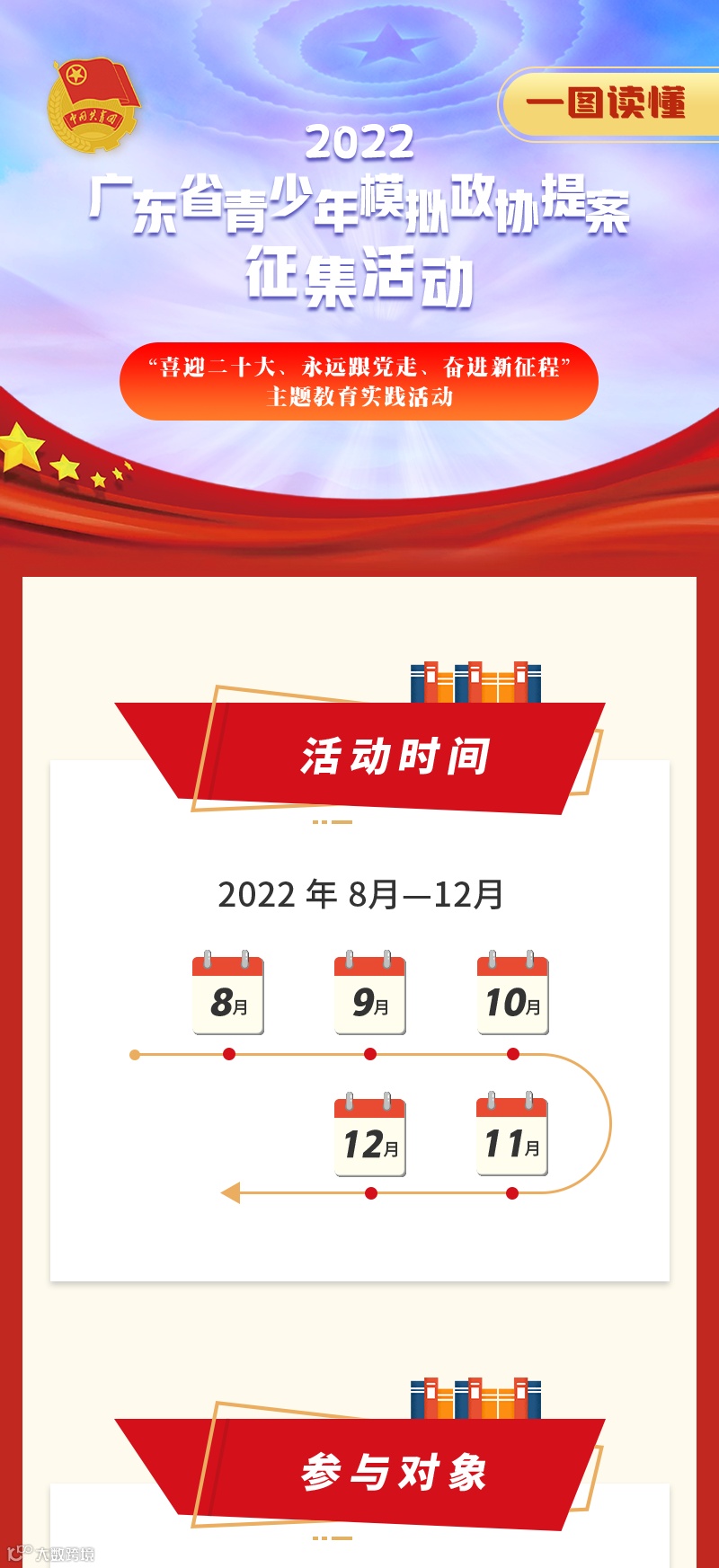 为更好引导广大青少年了解并有序参与国家政治生活和社会治理,在亲身实践中体会中国特色社会主义制度优势、增强制度自信,共青团广东省委员会、广东省学生联合会决定联合开展2022年广东省青少年模拟政协提案征集