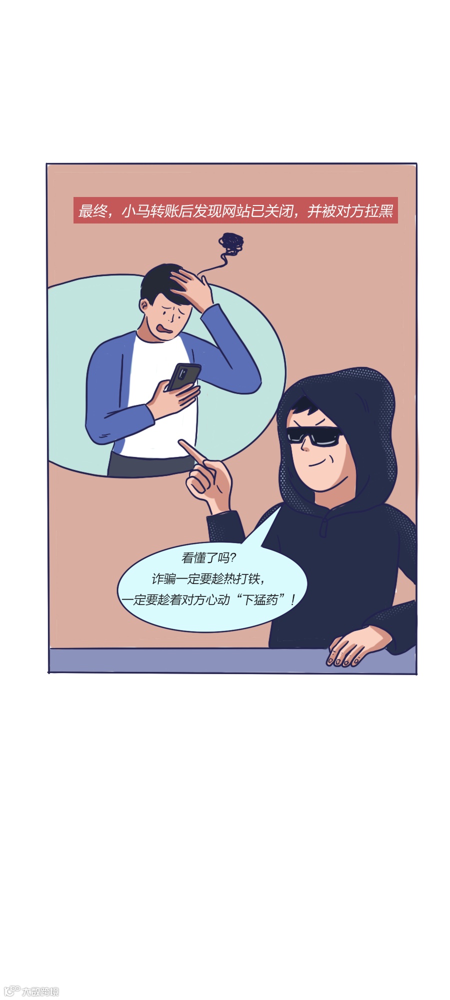 ,所有诈骗套路背后都是引诱你向骗子转账汇款。遇到可疑情况一定要及时向公安机关或银行工作人员寻求帮助,一旦不幸上当受骗,请第一时间拨打110报案!