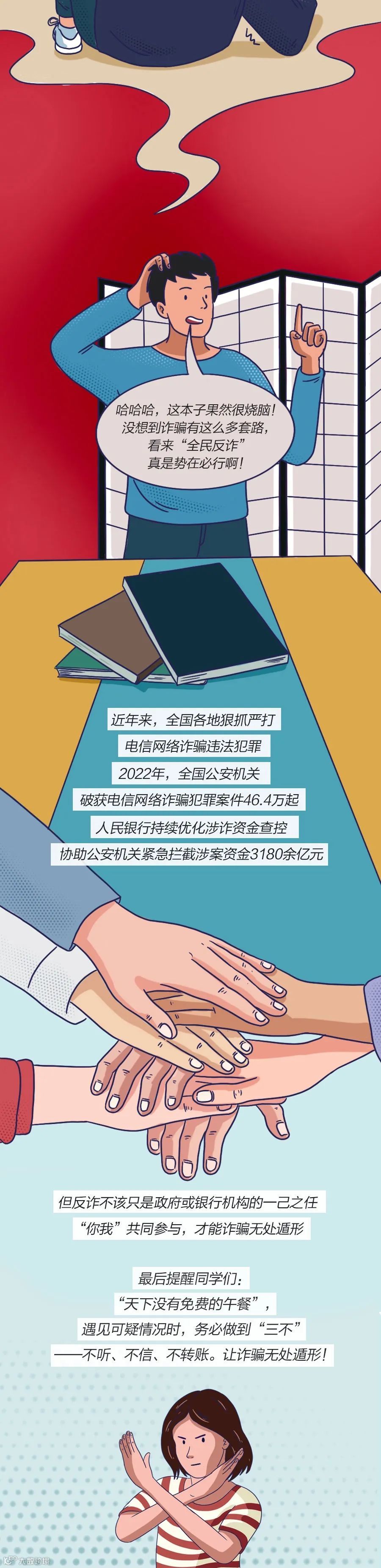 2.现阶段网络诈骗花样翻新、新型诈骗层出不穷、多种诈骗方式重重叠加。要相信“天上不会掉馅饼