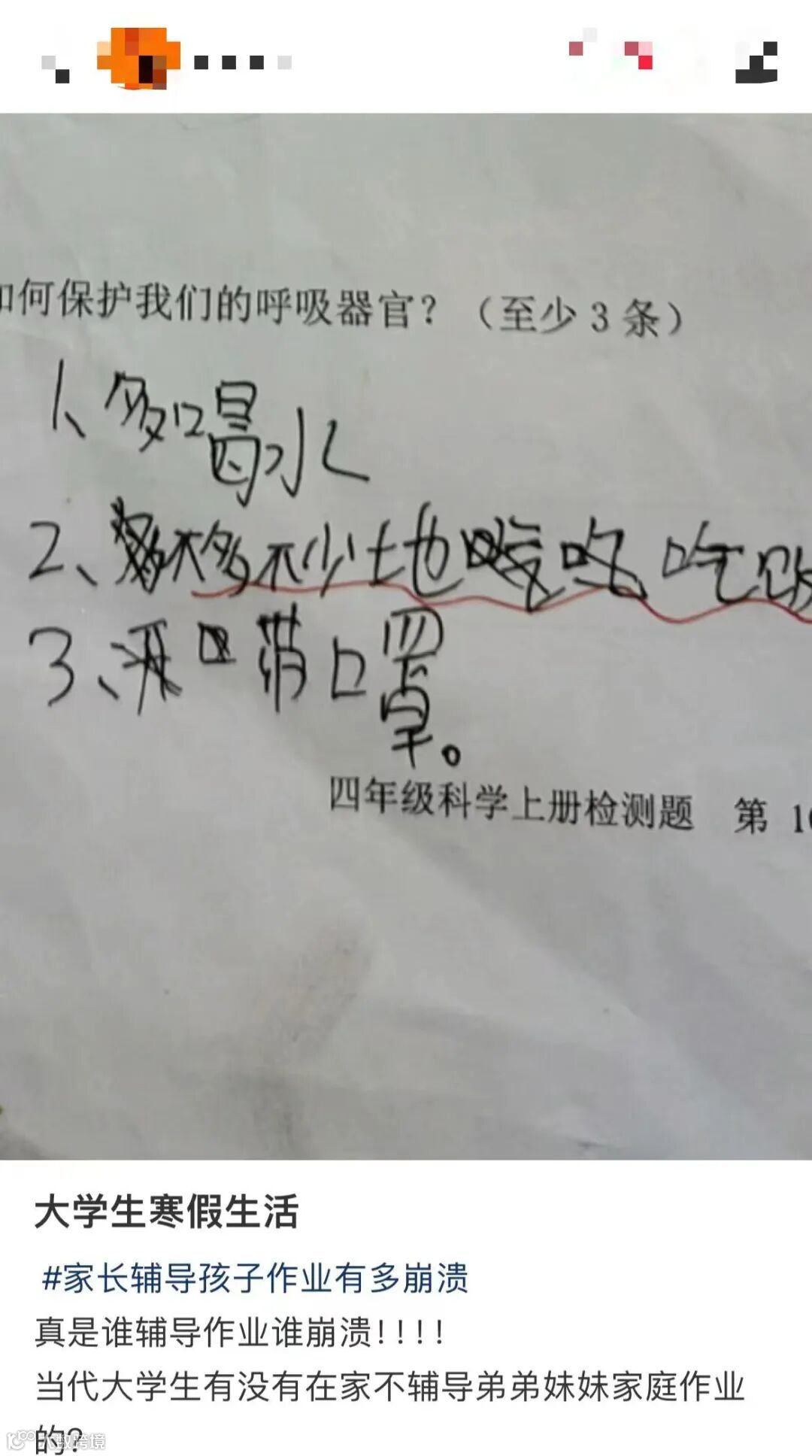 看到弟弟妹妹的作业