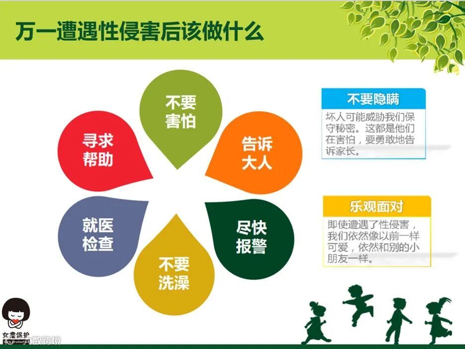 最后一部分是讲如果真的遭遇性侵了该做什么,这个部分非常核心的是要告诉孩子,即便遭遇了性侵,这不是你的错,是坏人犯了错,他应该受到惩罚。我们会告诉孩子,即便遭遇了性侵,你跟以前一样,依然是父母、老师爱的孩子。
