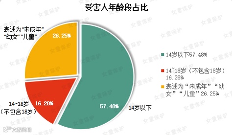还有受害人的年龄段,有人说我的孩子还小,但是坏人可不会嫌你的孩子小。在我们统计的数据中可以看到,57.48%的受害人是在14岁以下的,而公开报道的记录记载,受到性侵或猥亵的孩子最小年龄是两个月。
