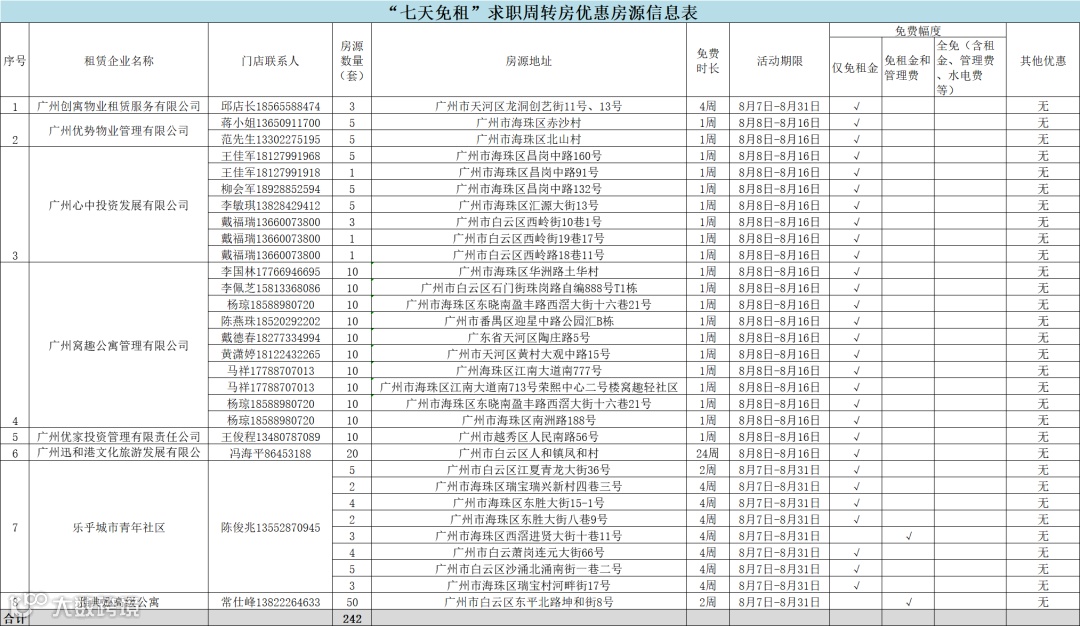 “七天免租”求职周转房