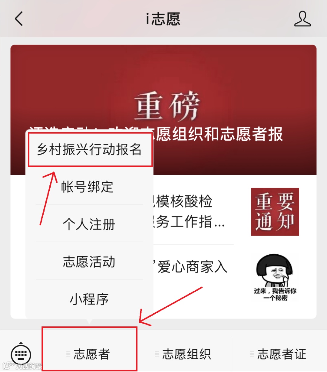 1.已在“i志愿”系统注册成为志愿者的,直接进入广东高校毕业生志愿服务乡村振兴行动官网进行报名。