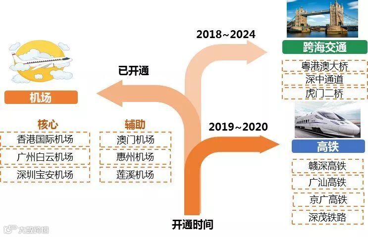 同时,广东正加快建设珠三角世界级机场群:香港国际机场、广州白云机场、深圳宝安机场(三核);澳门机场、惠州机场、莲溪机场(三辅)。