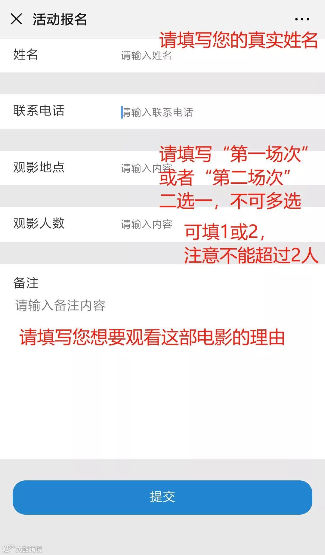 在各空白栏里提交您的真实信息
