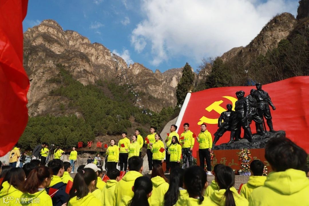 3月30日,河北大学“青马工程·弘毅班”100名团员青年在河北易县狼牙山五勇士的雕塑前,高唱国歌,向祖国和时代致敬。