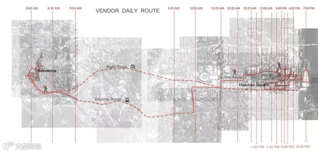 讲一个例子。我在华南理工大学建筑学院做的一个工作坊,其中有一组是跟踪卖冰糖葫芦的阿姨。