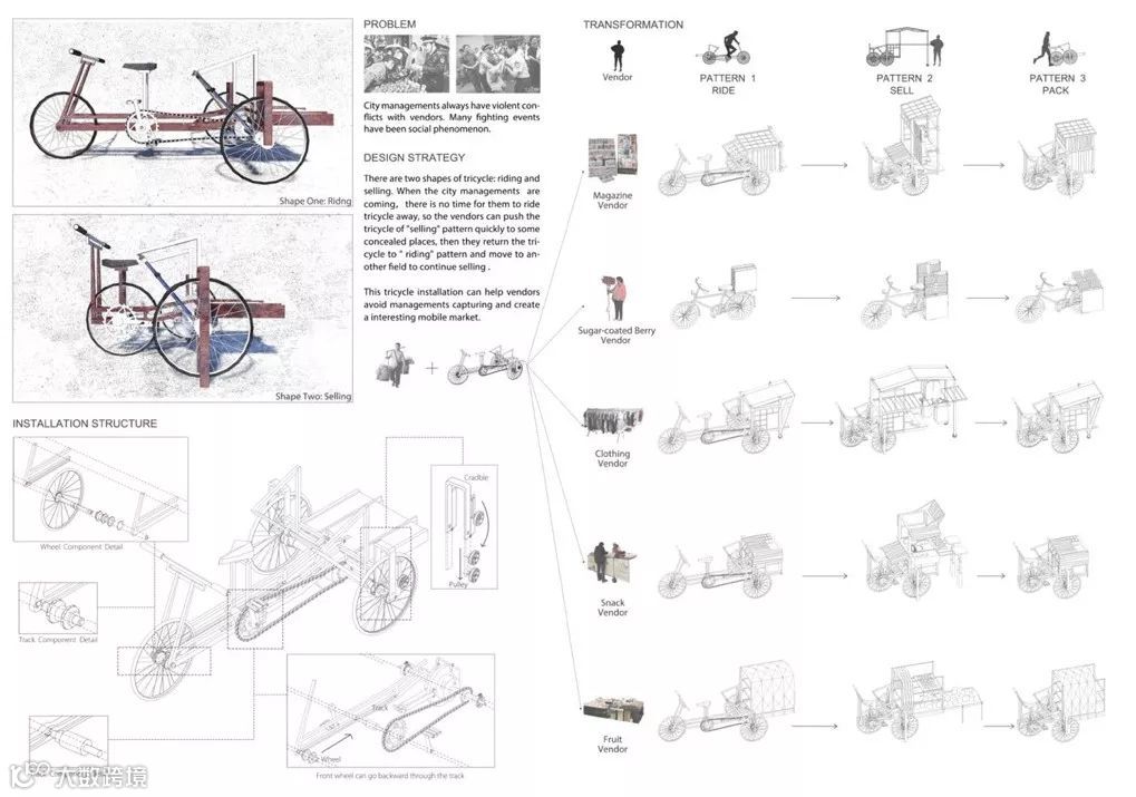 学生最后又把自己变成一个设计师,为她设计了一个变形金刚。这个变形金刚可以一直在变,可以变成一个厕所,可以变成一个卖花的、卖衣服的,不仅只是卖冰糖葫芦,在不同的地点它有不同的变法。