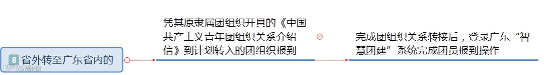 8.如果你是从广东省外学校毕业,来咱大广东——凭原隶属团组织开具的《中国共产主义青年团组织关系介绍信》到计划转入的团组织报到,完成团组织关系转接后,登录广东“智慧团建”系统进行团员在线报到。