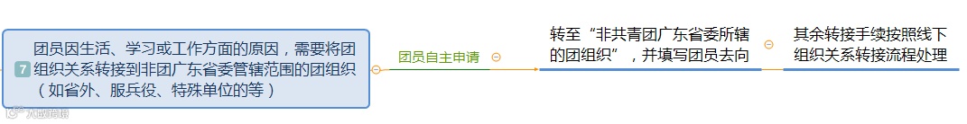 7.如果你毕业后要“飞出大广东”,或是去到有关特殊单位——申请转至“非共青团广东省委所辖的团组织”,并准确填写团员去向;其余转接手续按照线下组织关系转接流程处理。