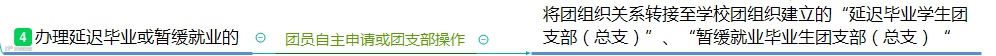 4.如果你已办理延迟毕业或暂缓就业--申请转至毕业学校团组织建立的“延迟毕业学生团支部(总支)”“暂缓就业毕业生团支部(总支)”