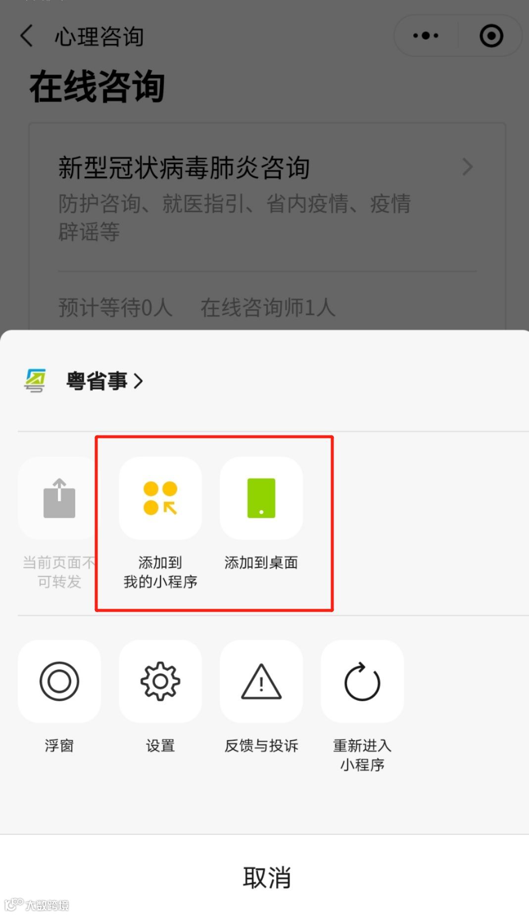 除此之外,团省委、省政数局依托“粤省事”“心理咨询”小程序,联合专业医务团队组成志愿者队,面向公众提供心理疏导、防护咨询就医指引等线上服务。