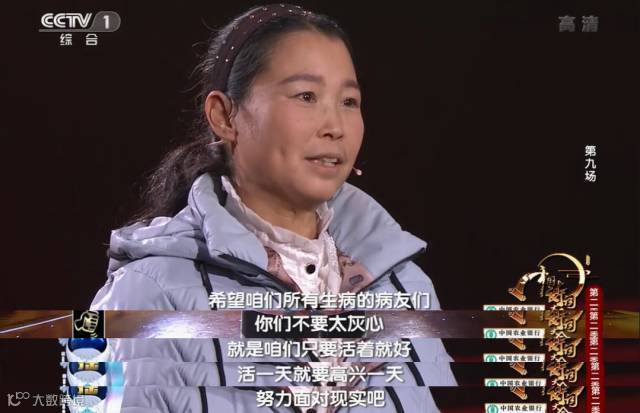 在舞台的最后一分钟,她还不忘鼓励别人,为他人带去力量:生病的人不要太灰心,我们活着就好,活一天,就高兴一天!