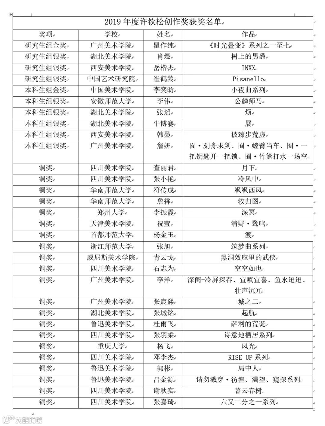 2019年7月2日,“十年一刻”2019年许钦松创作奖颁奖典礼暨十周年庆典,在广州美术学院大学城美术馆顺利举办。共青团广东省委书记池志雄、广州美术学院党委书记谢昌晶出席活动并为学子颁奖。