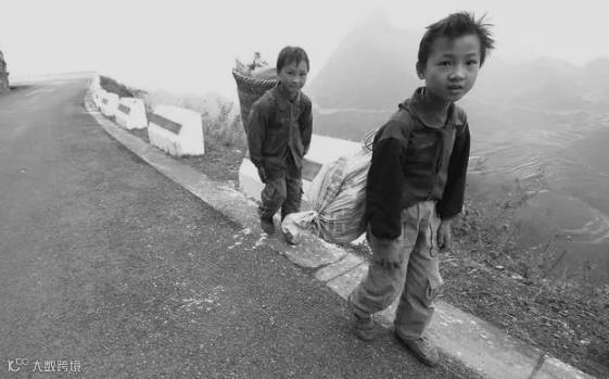 ▲2007年,贵州土地坳镇杉树小学两名5年级学生背着柴米油盐走在上学路上。