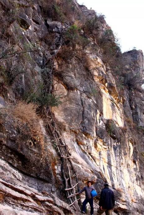 村里通向外界,需要顺着悬崖断续攀爬17条藤梯,其中接近村庄的几乎垂直的两条相连的藤梯长度约100米,没有藤梯的崖壁才是最危险的。