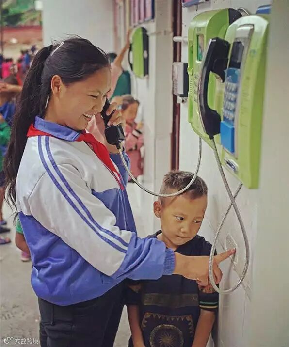 ▲2017年6月17日,父亲节前夕,陈心明带着妹妹和弟弟来到宿舍楼的刷卡电话前,给在山上的爸爸陈古吉打电话,提前庆祝父亲节。