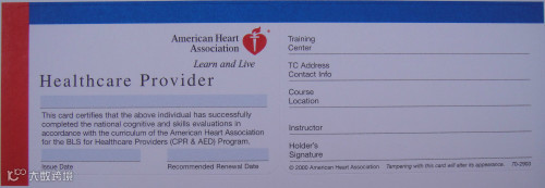 教材:BLS学员课程手册和BLS课程证书