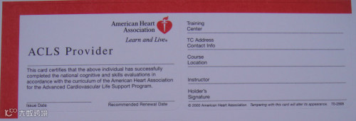 教材:ACLS学员课程手册和ACLS课程证书
