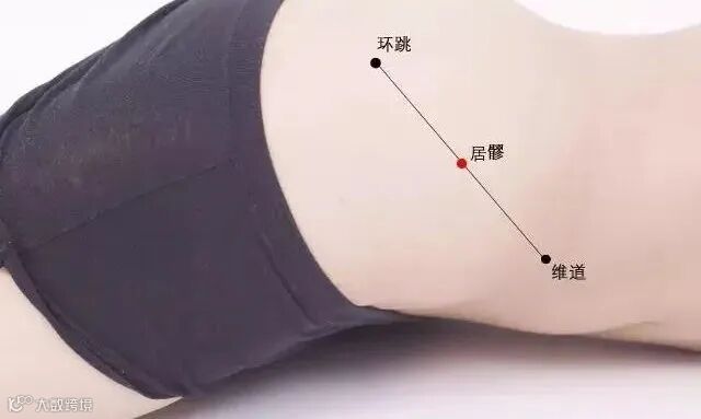 在髋部,当髋前上棘于股骨大转子凸点连线的中点处。臂部和大腿部深层脂肪代谢有促进作用,可提高肌纤维的活力,同时要治疗腰痛和下肢痿痹。使用艾灸仪或艾绒作用在以上穴位上,艾灸时间为15-30分钟/次,每天或隔天一次,10次为一疗程。