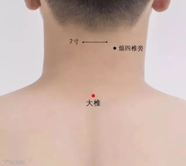 第七颈椎棘突下。主治清热凉血,消炎解毒,对血燥瘀络不通或血液过于粘稠,而造成面部疾患有卓效。
