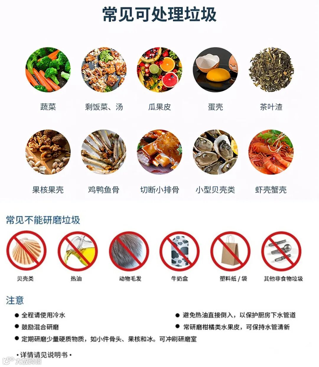 垃圾处理器内没有刀片这类锋利的东西,它是通过内置的推进器和研磨盘将鱼骨、鸡骨这样比较坚硬的食物,研磨成渣,通过螺旋冲刷的模式,将残渣顺着水流排走,非常的安全,只需一键操作即可处理,非常的方便。