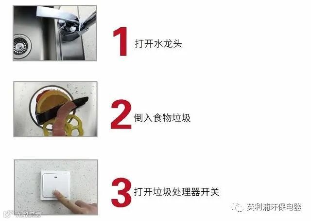 英利浦垃圾处理器使用起来也非常简单,只需三步即可轻松解决厨余垃圾。