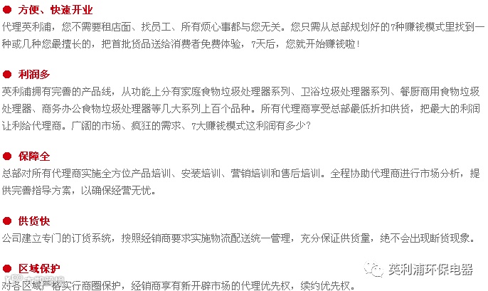 英利浦开创垃圾处理行业先河,市场完全空白,2.5亿家庭需要英利浦,无数的单位、机关、写字楼也需要,无限市场触手可及!