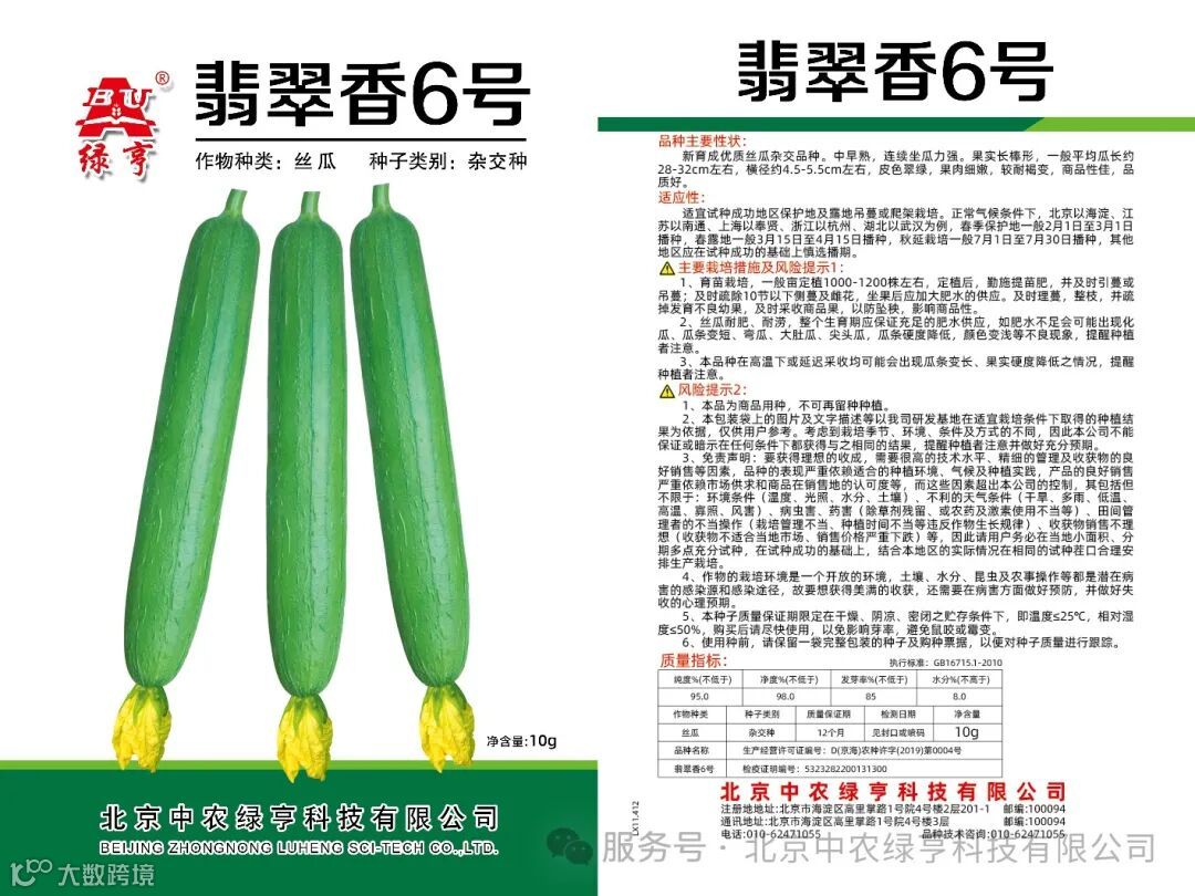 给大家推荐绿亨优质丝瓜品种:翡翠香6号。