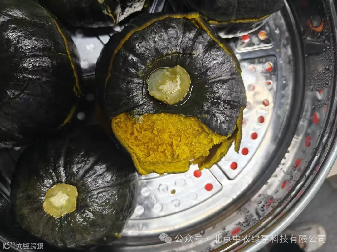 果皮墨绿至黑色带浅绿条带,果型扁圆,粉,甜,面,长势旺,适宜条件下一般平均单果重500-650克左右,植株长势强健,连续带瓜能力强,商品性好,口感好,粉度高,深受消费者和渠道商喜欢。