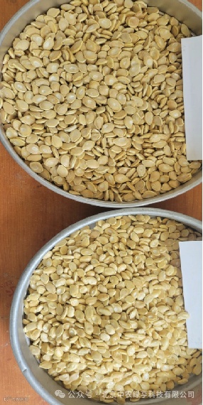 60℃开水,浸泡种子并不断搅拌10分钟,使其受热均匀,水温降至30℃时,浸种4-6小时,搓洗表面粘液,再用1%高锰酸钾溶液浸泡15分钟,沥水后用清水冲洗晾干表面水分,用洁净湿布包好