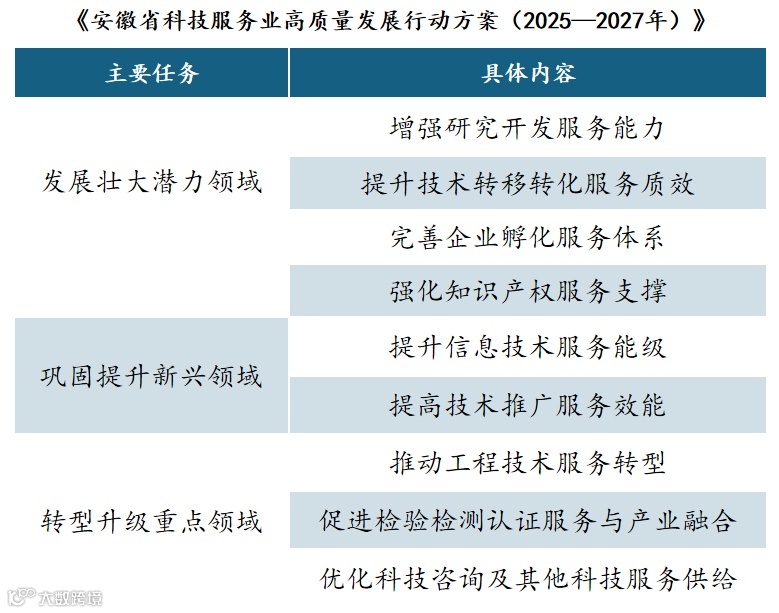 日前,安徽省正式印发《安徽省科技服务业高质量发展行动方案(2025—2027年)》,目标到2027年全省规上科技服务业企业营收突破2700亿元,提出构建起“三大领域突破、五大举措护航”的系统框架。即壮大发展壮大研发服务、技术转移、企业孵化、知识产权等潜力领域,巩固提升信息技术服务与技术推广新兴领域,推动工程技术、检验检测认证等重点领域转型升级;实施科技服务商招引培育、体制机制改革、科技金融赋能、专业人才汇聚、集聚发展跃升五大行动。方案提出推动“科大硅谷”与工业互联网等“谷院网”协同、建设50个概念验证中心、布局10家顶尖孵化器、引育不少于100家垂类模型企业、推动省级天使基金群规模超150亿元以及培育省级科技服务业集聚区等关键举措,全面构建科技创新与产业创新深度融合的现代化服务生态体系。