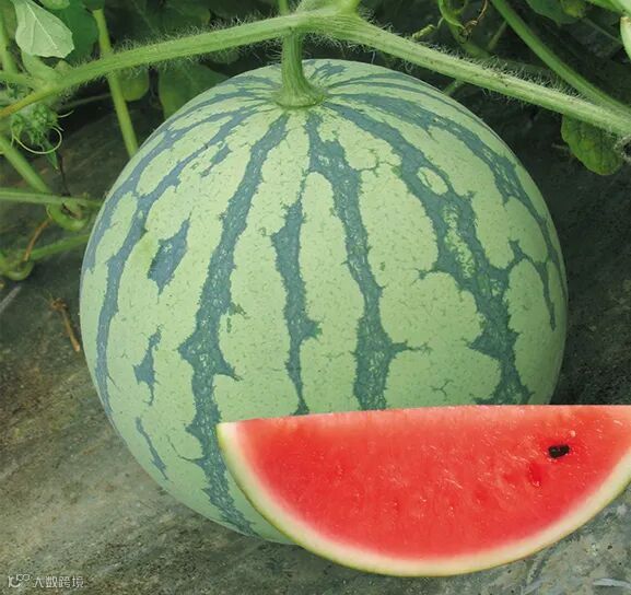 8424类优势品种,果大、肉红、优质 主要性状及适应性:中熟,长势稳健,坐果力强,适温下一般果实发育期33-40天左右。一般平均单果重5—7Kg左右,大瓜可达8Kg。果皮浅绿覆墨绿条带,果肉红,肉质脆甜多汁,糖度高,风味品质特好适宜试种成功地区春秋栽培。