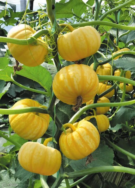 食用观赏俱佳黄色贝贝南瓜 ,早熟,坐果多,老熟果一般平均单果重300—500g,果形扁圆,果皮浅黄底覆深红黄色条纹,果肉细腻,甜面,品质好,特耐贮运。适宜试种成功地区春秋栽培。