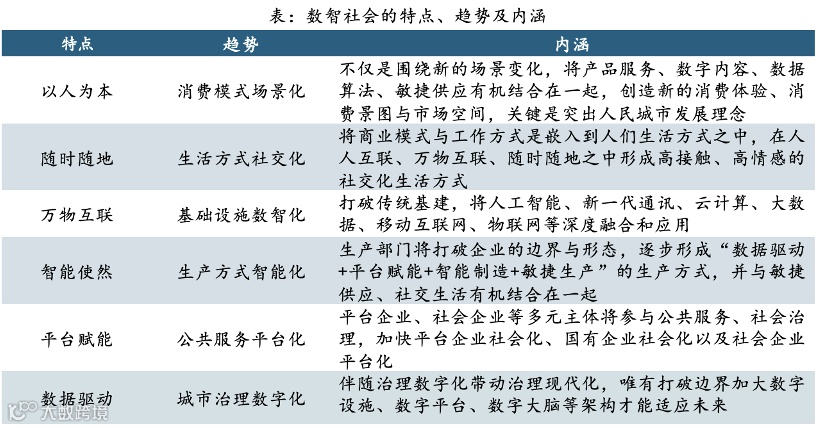 三是以数智社会建设顺应和推动社会民生形态之变。伴随生产力与生产关系的纵向演化,人类社会逐渐从狩猎时代、农耕时代、工业时代、信息时代进入智能时代。智能社会主要围绕人的需求需要、生产生活进行社会运行、资源配置与社会治理等成为发展的核心。最终将代表“物”的数据、代表“事”的信息、代表“人”的情绪进行有机整合,通过各种技术手段和机制引导,充分实现泛在物联网的高效连接,有效利用信息、数据与通信技术的共享平台,促进跨领域、跨系统、跨条块的服务应用,不断催生新价值和新服务。