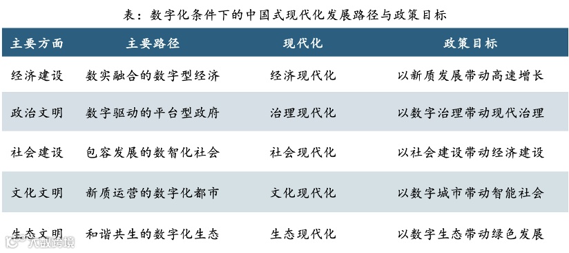 编者按:当前我国进入中国式现代化新征程,迫切需要重识数字化与中国式现代化的关系,重构数字中国建设发展范式,重建数字化对“五位一体”影响机制,重温数字转型价值遵循与技术路线,重塑数字化带动中国式现代化途径。下文围绕发展范式创新、治理模式创新、作用机制创新、理论方法创新、组织方式创新,原创性提出中国式现代化建设新结构新范式、数字中国建设发展新阶段新问题,首创性提出数字化带动现代化新形态新机制、规律性总结国际社会数字转型新探索新规律,实操性提出数字化赋能中国式现代化新路径新举措,为各地数字化转型工作提高战略位势、切换发展范式、重构底层逻辑、优化顶层设计、形成解决方案提供参考。