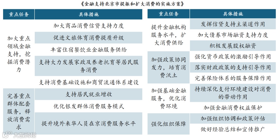 11月19日,人民银行北京市分行、北京市委宣传部、市委金融办等12部门联合印发《关于金融支持北京市提振和扩大消费的实施方案》,力争到2030年北京市消费领域金融服务水平进一步提升,北京市住宿餐饮、文旅体育、教育、居民服务等服务消费领域和养老产业贷款余额持续增长、信贷投放力度不断加大。《实施方案》从加大重点领域金融支持挖掘消费潜力、完善重点群体配套服务释放消费需求、提升金融机构服务水平扩大消费供给、加强政策协同发力培育消费沃土、加强基础金融服务优化消费环境和强化组织保障等六方面提出18项具体措施,要求用好结构性货币政策工具,激励引导金融机构加大对服务消费重点领域各类经营主体的信贷投放;实施好个人消费贷款与服务业经营主体贷款贴息等政策,降低居民消费信贷成本和服务业经营主体融资成本。