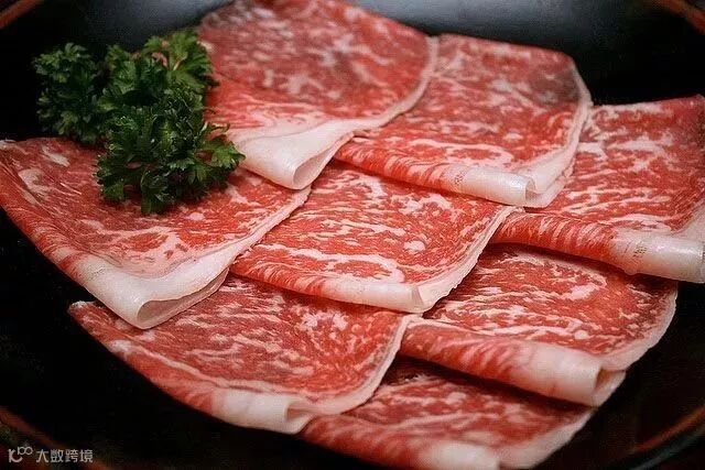 ① 起初美国和澳洲的肥牛运往中国时,大多是急冻状态,所以通常会用专业切片机器切成片状,方便食用。因为美国、澳洲的肥牛肥瘦较均匀,薄切吃起来口感很好。