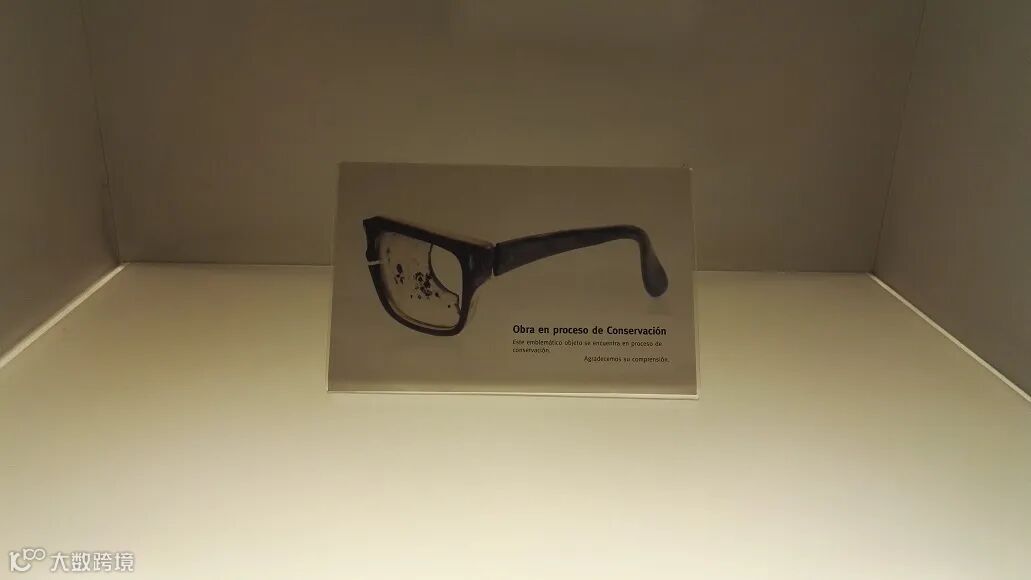 这半截眼镜放得实在有意思,看似小小的物件,浓缩了好多信息。更有意思的是,在我参观的时候,这半截眼镜是不在场的——玻璃板后面只摆放着一张与原物等同大小的图片,显示了那半截黑色塑料眼镜框架以及嵌在框中的沾着尘灰、残缺不全的镜片。图片上的文字解释说,这件文物正在“养护过程”中,敬请谅解。如此看来,显现在我眼前的倒像是某种观念艺术作品,玩弄着图像与本体、能指与所指、在场与不在场的游戏……对于想了解智利历史的人来说,展品的不在场并不重要。它归根到底只是一个符号。在历史的视觉化呈现中,很难找到比总统的这半截眼镜更有力的符号了。