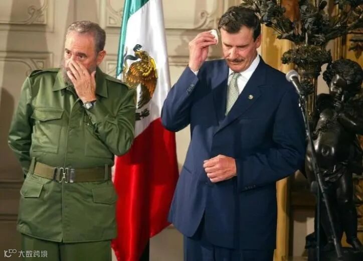 墨西哥时任总统福克斯(右)与卡斯特罗(左)之间爆出金句“吃完就走”的那一天