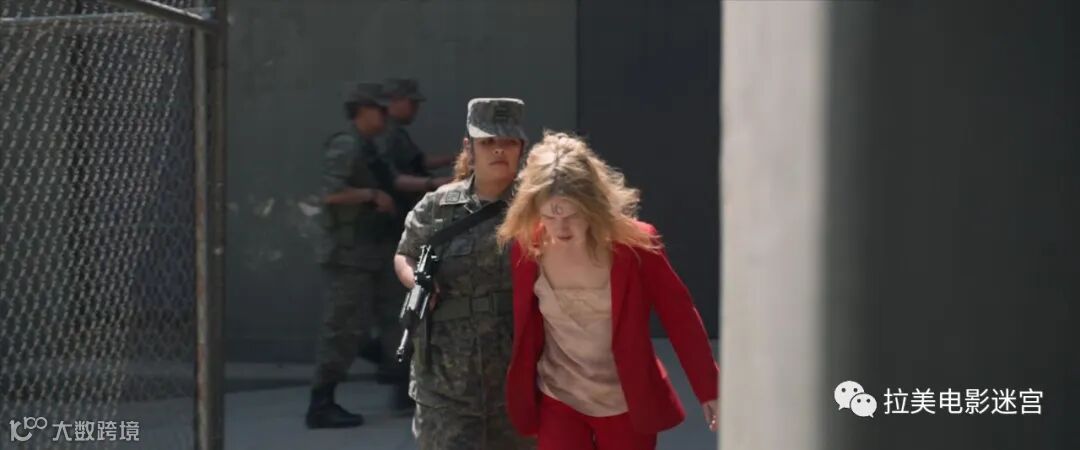 然后我们跟随玛丽安进入城区,看到暴乱已经开始,且似乎已经失控。玛丽安之后经历了炼狱(人质集中营),和地狱(被杀)。集中营的那段的残忍和恐怖,频频突破人类底线,颇有《所多玛120天》的观感。而红衣的玛丽安,在那绿色包围下是如此的弱小,最后化为一抹腥红的血色。