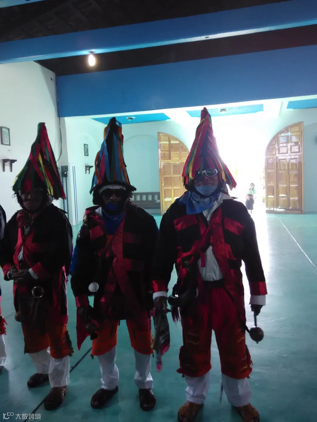 墨西哥恰帕斯州坎德拉里亚,圣诞仪式中身着传统服装的印第安人(2015,作者摄)