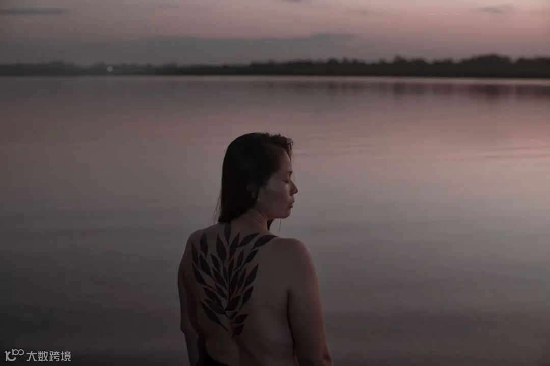 希皮博-科尼博医护人员Celinda Cahuaza站在亚里纳科查湖湖畔,身上纹着Yuna Rao叶图案。Celinda Cahuaza从父亲那里继承了有关药用植物的知识。她所使用的Yuna Rao植物,是希皮博-科尼博宇宙论中一种著名的重要药材。它的名字翻译为 "Herb that Heals",用于治疗发烧和现在有新冠病毒症状的人。